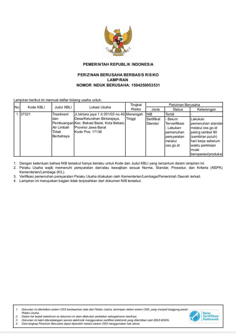 Usaha sedot WC yang kami jalankan telah memenuhi seluruh persyaratan legal dan administratif sesuai ketentuan pemerintah. Legalitas ini menjadi bukti komitmen kami dalam memberikan layanan yang aman, terpercaya, dan bertanggung jawab.